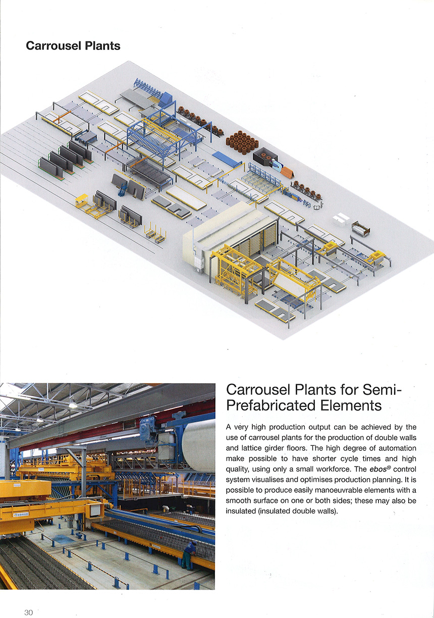 通過(guò)使用卡魯塞爾工廠的雙層墻和格子梁地板的生產(chǎn)線可以實(shí)現(xiàn)高產(chǎn)出。自動(dòng)化的高精確度的運(yùn)用,只需要很少